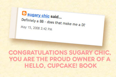 Congrats to both of the winners! Thanks to Bakerella for such a FUN contest! The cupcake chart was great!